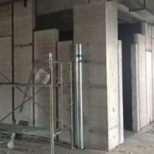 按排图,从一侧开始安装。若隔墙板上有门窗洞口,就从门窗洞口向两侧开始安装。对准墨线,用撬棍尽力在底部撬动,上端顶紧,板边严实,底部用木楔塞牢,加上加固件。